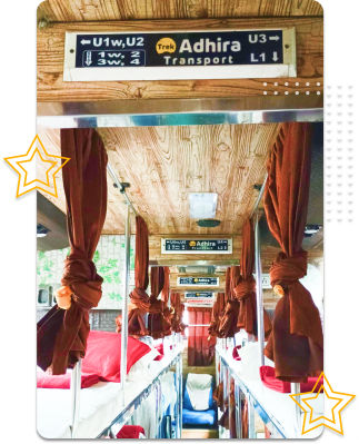 Adhira Transport We provides bus services between various locations across TamilNadu. Being an expert on the other transportation sectors, we are able to provide excellent bus service. Take a ride on our Semi Sleeper bus and feel the awesomeness. We are working to extend our services to various other destinations in near future.